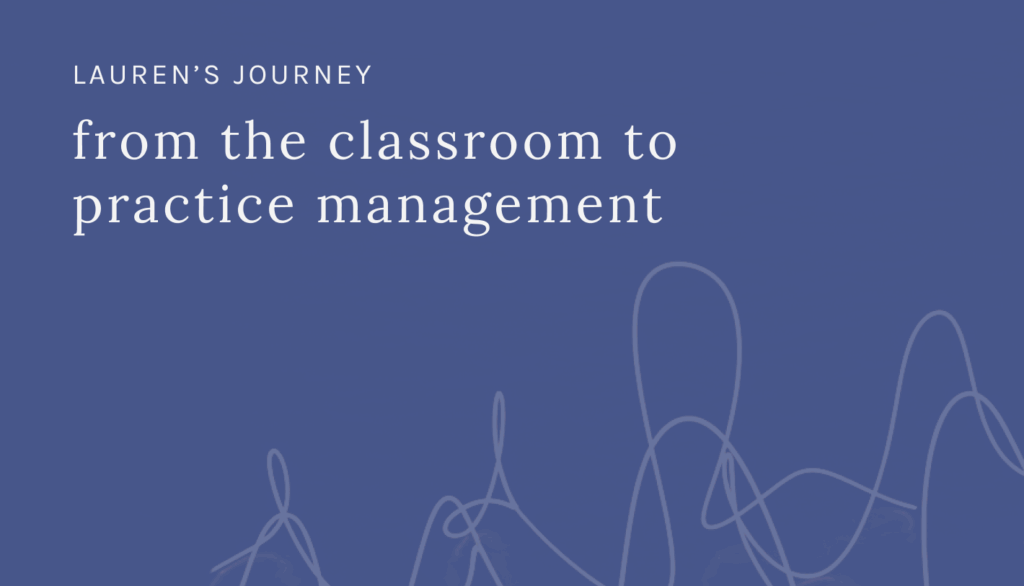 What she didn’t expect? That her first full-time role post-grad would involve helping open an entirely new practice location—while often being the only administrative team member on site. “There were definitely days where I wore five different hats,” Lauren laughs. “But those months taught me more than any classroom could. I got to see how every part of the system works—from the front desk to billing to managing a team.”